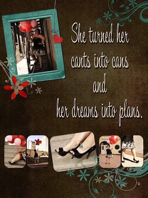 I was told last night that I walk like a "cute penguin." Its a good thing the comment was prefaced by the word cute. But its hard walking different since my surgery. Its hard looking at a flight of stairs let alone go up or down htem. I get frustrated and stuck sometimes in my recovery. I miss the easy days where I rolled out of bed full of energy, ready to take on the world. I miss pretty high heel shoes and well moisturized feet. I cant wait to reach my feet. I cant wait until I walk normal. But this life is the journey not the destination and it is with each and every step that I'm turning my cants into cans and my dreams into plans.